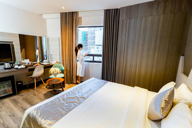 Khi lựa chọn gói combo tại Vietnam Booking, bạn sẽ có 2 đêm nghỉ tại khách sạn BB phòng Deluxe với cửa sổ rộng lớn nhìn ra mặt biển vô cùng ngoạn mục. Buffet sáng được phục vụ theo phong cách châu Á và châu Âu trong không gian sang trọng, tiếp thêm năng lượng cho một ngày mới khám phá thành phố biển.