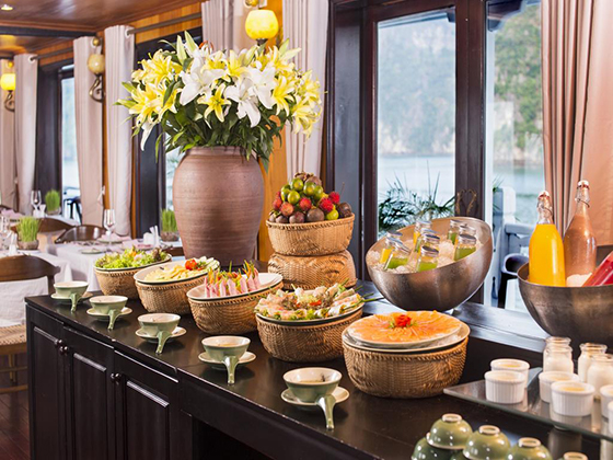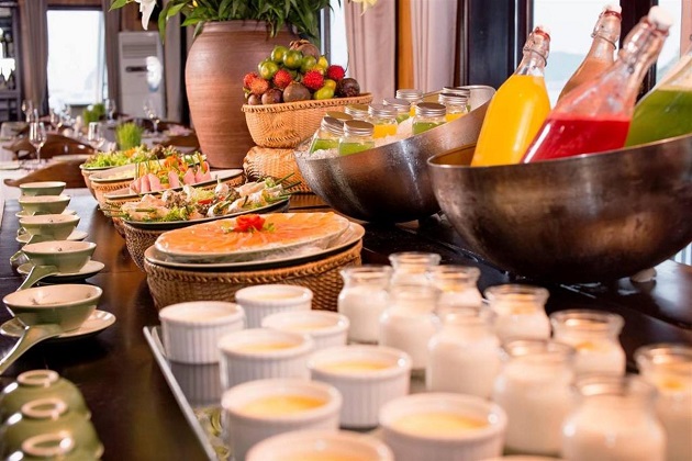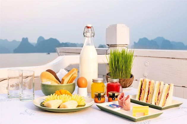 09:30 trở đi: Bữa ăn trưa nhẹ đầy đủ được phục vụ khi tàu quay trở về bến.