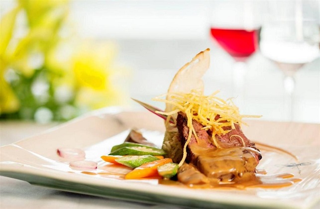 - Bữa trưa và bữa tối thực đơn có sẵn kết hợp ẩm thực truyền thống và quốc tế