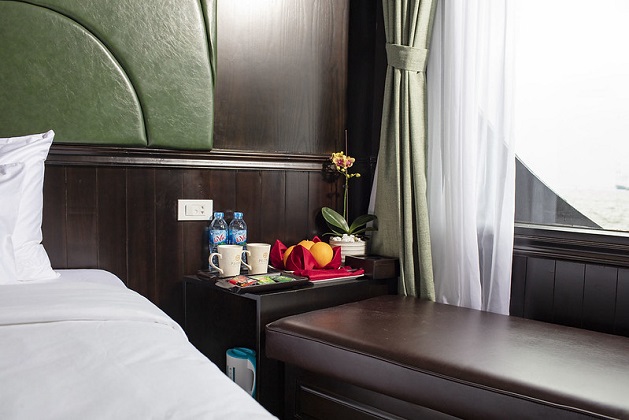Quý khách nhận phòng, nghỉ đêm trên Du thuyền Peony. Các vật dụng trong phòng có sẵn: dép xỏ ngón, khăn tắm, khăn mặt, áo choàng tắm, két sắt an toàn, dầu gội, sữa tắm, bàn chải, kem đánh răng, bánh xà phòng, chụp tóc, nước lọc (tiêu chuẩn 1 người/chai), trà, cà phê, máy sấy tóc, điều hòa, tivi,...