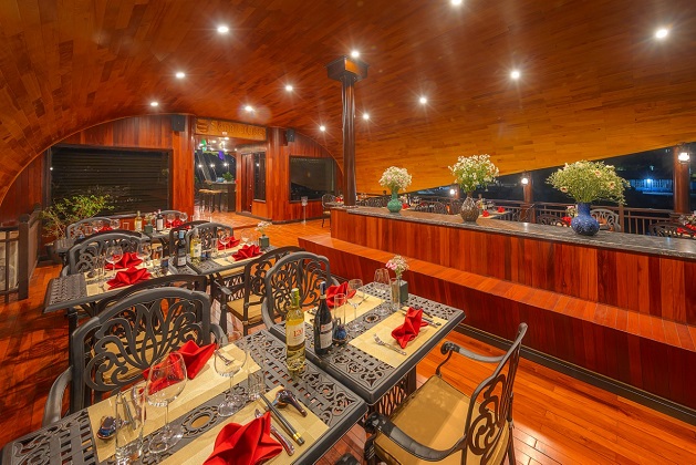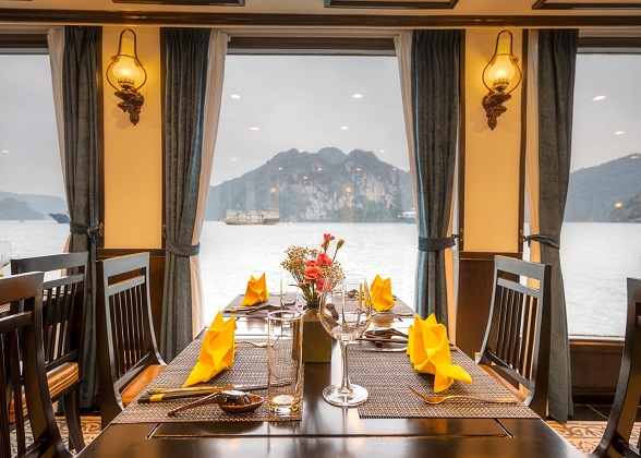 Thưởng thức bữa tối tại nhà hàng trên du thuyền.