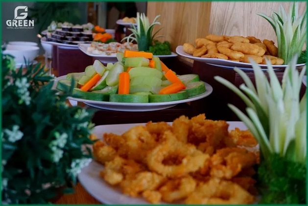 Khi đặt phòng Green hotel Vũng Tàu không những bạn được nghỉ ngơi tại những căn phòng đầy đủ tiện nghi, mà bạn sẽ được thưởng thức ẩm thực tuyệt vời tại hai nhà hàng phục vụ mọi yêu cầu của du khách về ẩm thực Á, Âu, các món ngon 3 miền, đặc biệt là các món hải sản tươi sống.