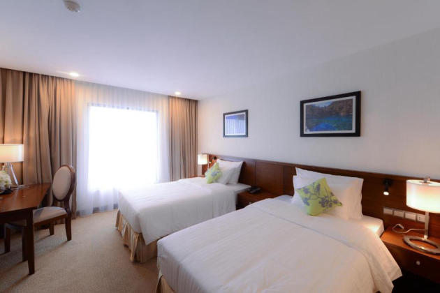 Phòng Deluxe hứa hẹn trở thành một chốn nghỉ ngơi phù hợp cho quý khách. Phòng được đầu tư, chăm chút kỹ lưỡng với thiết kế thẩm mỹ, các tiện nghi phòng được cung cấp đầy đủ nhằm đem tới cho quý khách không gian riêng tư, thoải mái nhất có thể. Hơn thế nữa, khi đến đây có thể trải nghiệm hồ bơi trên tầng thượng của khách sạn, du khách vừa được đắm mình trong làn nước trong xanh vừa ngắm nhìn được vẻ đẹp của thủ đô sầm uất, nhộn nhịp.