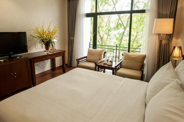 Bên cạnh đó, quý khách còn được tận hưởng không khí thanh bình, nhẹ nhàng và yên tĩnh của Hà Nội tại phòng Deluxe. Với thiết kế phòng rộng rãi, giường đôi êm ái, trang bị tất cả các tiện nghi phòng cần thiết, đảm bảo sẽ đem đến cảm giác thư thái, dễ chịu cho quý khách. Dịch vụ spa của khách sạn là một nơi lý tưởng để quý khách xua tan đi mọi mệt mỏi, tái tạo lại nguồn năng lượng của mình với đội ngũ nhân viên có tay nghề cao cùng phương pháp trị liệu đẳng cấp.