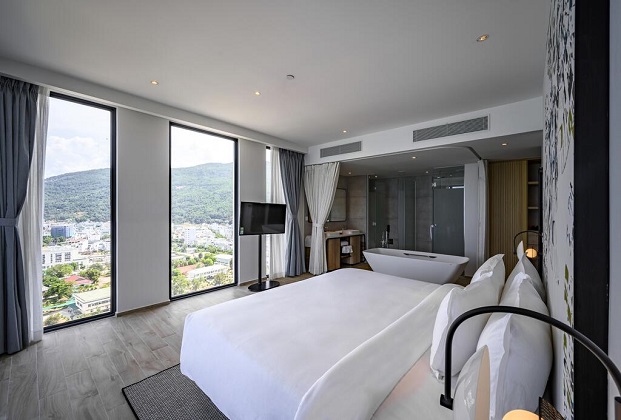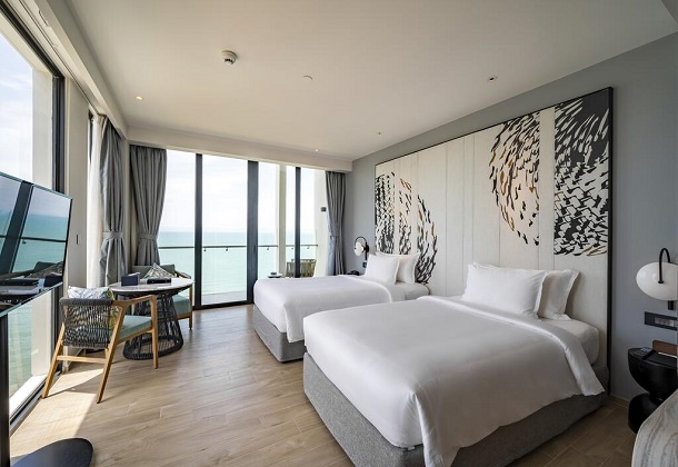 Hệ thống phòng gồm quy mô 256 phòng với đa dạng các loại phòng giúp Quý khách có nhiều sự lựa chọn, cho dù là một kì nghỉ hay một chuyến công tác. Với thiết kế phong cách thanh lịch của kiến trúc đương đại hòa quyện với cảm hứng từ thiên nhiên, Khách sạn như mang đến cho Quý khách cảm nhận chân thật từ đại dương, với nắng, gió cùng cảnh quan xanh, tạo cảm giác hòa mình với thiên nhiên giữa lòng thành phố.