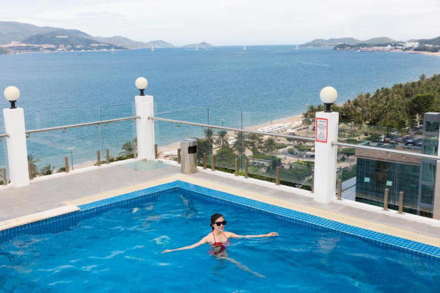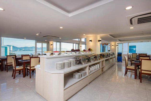 Hơn thế nữa, quý khách cũng được thưởng thức buffet sáng miễn phí với hơn 40 món ăn đa dạng được chế biến kỳ công dưới bàn tay của những đầu bếp chuyên nghiệp, có tay nghề lâu năm của khách sạn. Hồ bơi nằm trên tầng 16 đảm bảo khiến cho quý khách thêm phần thư giãn và dễ chịu hơn khi có thể ngắm nhìn bãi biển xanh ngát của biển Nha Trang.