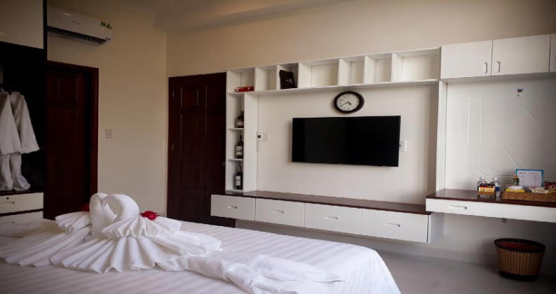 Có tổng cộng 28 phòng nghỉ tại khách sạn với lối thiết kế đơn giản nhưng vẫn tôn lên được sự tinh tế, hiện đại khi nội thất trong phòng chủ yếu bằng gỗ. Mỗi phòng đều được trang bị đầy đủ những vật dụng vệ sinh cá nhân, TV, máy lạnh,... Nhà hàng phục vụ đa dạng với nhiều món ăn từ Á sang Âu được trình bày vô cùng đẹp mắt, ngon miệng và đảm bảo an toàn vệ sinh thực phẩm. Và đã đến biển thì phải thử ngay hải sản, khách sạn luôn cung cấp hải sản tươi mới mỗi ngày, đảm bảo sẽ không làm quý khách thất vọng đâu đấy!