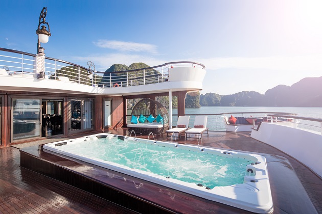 16:00 Du khách có thể lựa chọn thư giãn trên sundeck hoặc bể bơi ngoài trời hoặc ghé thăm đảo Ti Tốp, nơi du khách có thể tham gia các hoạt động bơi lội hoặc leo núi và ngắm cảnh đẹp toàn Vịnh.