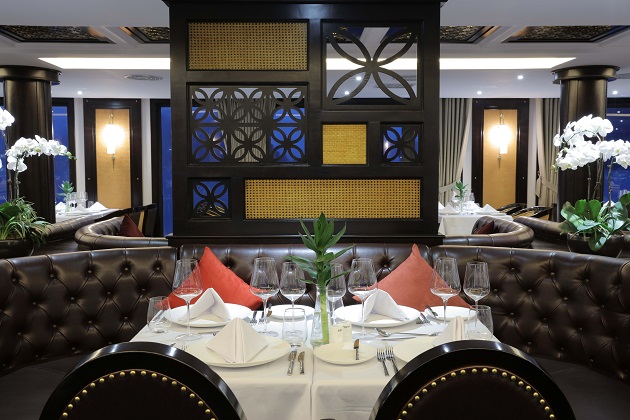 13:00 - 14:00 Bữa trưa sẽ được phục vụ tại nhà hàng khi du thuyền di chuyển về Vịnh Hạ Long, làng chài Ba Hang và Hòn Trống Mái.