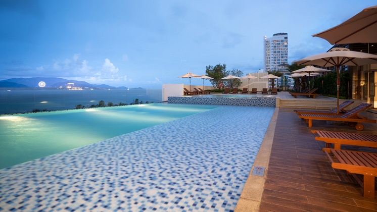- Sử dụng các tiện ích của khách sạn gồm hồ bơi ngoài trời ngắm biển, phòng gym hiện đại, khu vui chơi trẻ em
