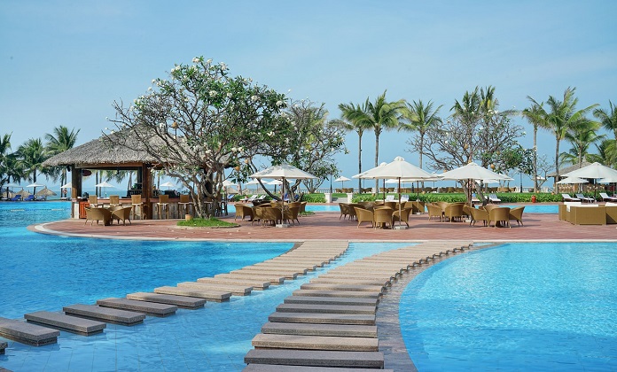 Hệ thống khu nghỉ dưỡng gồm 2 tòa nhà Executive và Deluxe với 485 phòng nghỉ được thiết kế sang trọng, nội thất tiện nghi đạt tiêu chuẩn quốc tế 5 sao. Khu nghỉ dưỡng cung cấp đa dạng các hạng phòng với mức độ sang trọng và giá tiền khác nhau để Quý khách có thể lựa chọn phòng nghỉ thoải mái phù hợp với điều kiện của mình. Hầu hết các phòng tại khu nghỉ dưỡng đều có ban công riêng và bàn ghế được làm bằng song mây.