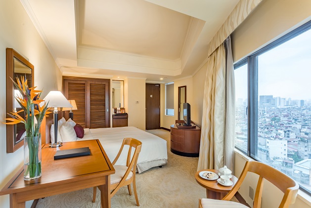 Khách sạn 5 sao tại Hà Nội cung cấp 256 phòng khách rộng rãi và được trang trí đẹp mắt. Tất cả các phòng đều rộng rãi, sáng sủa và được bảo trì tốt với tầm nhìn tuyệt đẹp ra công viên hoặc thành phố với các tiện nghi chất lượng của Nhật Bản như nhà vệ sinh tắm hiện đại 100% trong phòng tắm.