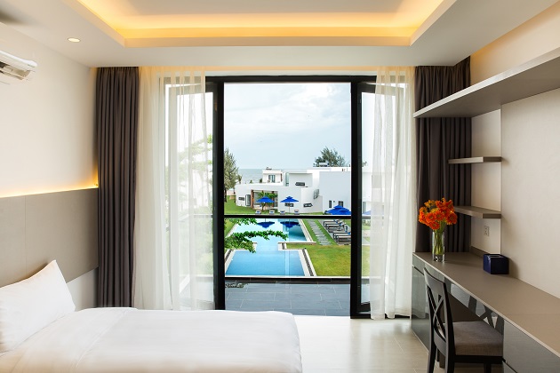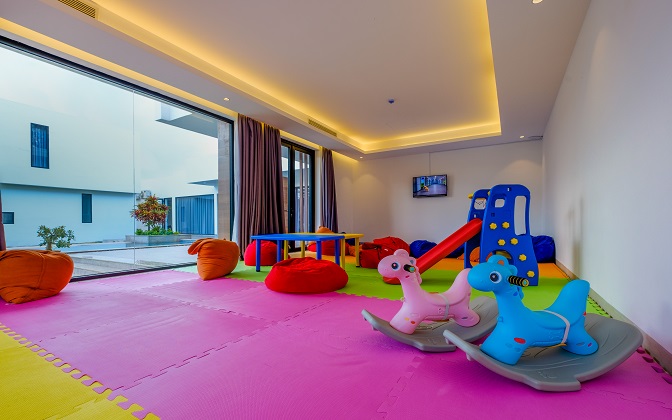 - Miễn phí sử dụng: phòng gym, khu vui chơi trẻ em, xe đạp, hồ bơi chung và bãi biển riêng của resort