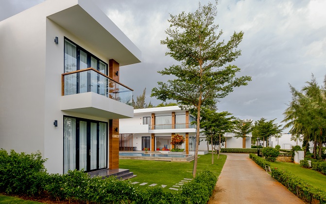 Hệ thống biệt thự với kiến trúc biệt thực phân tầng độc đáo tạo tầm nhìn hướng biển cho từng vị trí trong dự án. Thiết kế đáp ứng đầy đủ phong thủy của phương Đông với gió lộng thổi vào nhà, khuôn viên tràn ngập ánh sáng thiên nhiên, hồ bơi riêng và bờ biển ngay tầm mắt.133 căn biệt thự được thiết kế theo kiến trúc tối giản, hiện đại, nội thất sang trọng và được bài trí hết sức tinh tế với khuôn viên thoáng mát tràn ngập ánh sáng.