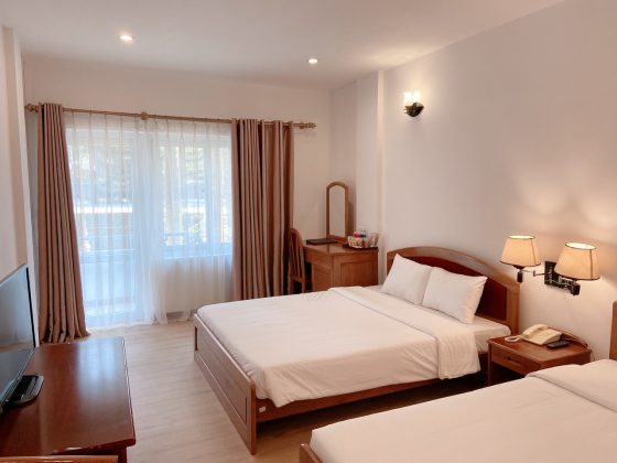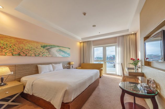 Với 2 đêm lưu trú tại khách sạn Dragon King Đà Lạt tiêu chuẩn 4 sao, Quý khách sẽ được nghỉ ngơi tại phòng Deluxe diện tích 30m2 với cửa sổ rộng nhìn ra thung lũng đi kèm cùng với các tiện ích phòng, miễn phí bữa sáng Buffet tại nhà hàng, thức uống chào mừng khi nhận phòng, sử dụng phòng tập thể dục, dịch vụ văn phòng, truy cập Internet tốc độ cao không giới hạn.