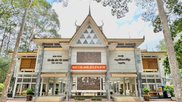 Nhà trưng bày văn hóa Khmer là nơi lưu giữ những giá trị văn hóa đặc sắc của cộng đồng người Khmer Nam Bộ. Được xây dựng vào năm 1938 với phong cách kiến trúc chùa Khmer truyền thống, nơi đây trưng bày các hiện vật quý như bộ kinh khắc trên lá thốt nốt, ghe ngo truyền thống và các nhạc cụ ngũ âm.