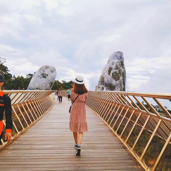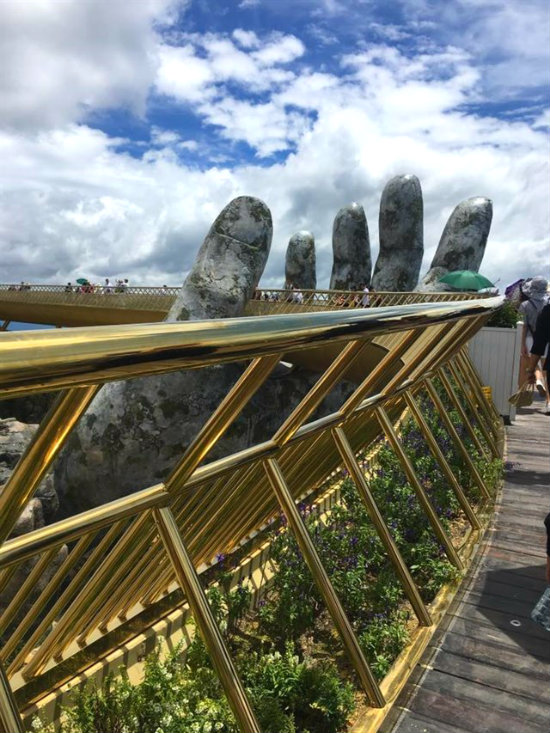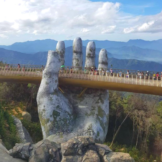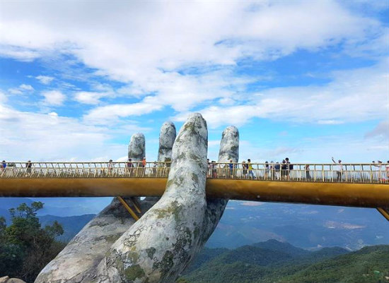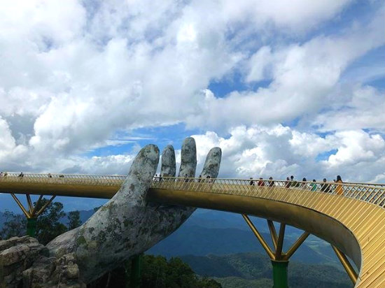 Đừng ngỡ ngàng và nghĩ rằng đây là một cảnh đẹp chỉ có ở nước ngoài nhé! Cầu Vàng Bà Nà Hills Đà Nẵng lơ lửng giữa chốn rúi rừng được nâng đỡ bởi bàn tay khổng lồ này ở Việt Nam và đang rất “hot”, được nhiều bạn trẻ đến tham quan, chụp ảnh “sống ảo” nhất trong thời gian gần đây.