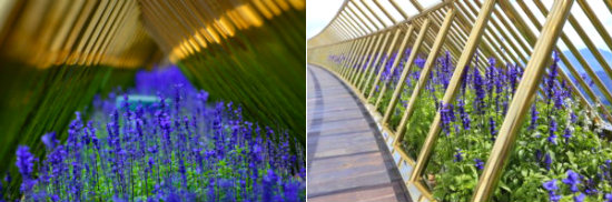 Dọc lối đi trên cầu là những sắc hoa rực rỡ, tạo điểm nhấn thêm cho cây cầu này thêm ấn tượng trong mắt du khách. Bạn có thể chụp ảnh với cầu càng hoặc “sống ảo” hơn với những bức ảnh toàn cảnh cây cầu được đôi bàn tay khổng lồ nâng đỡ giữa núi rừng, tưởng chừng như đó là khung cảnh của một điểm tham quan ở nước ngoài.