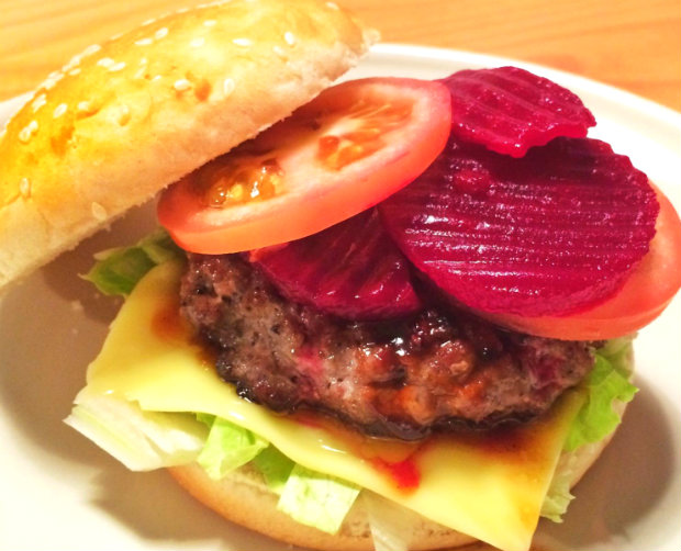 Củ dền ăn kèm với hamburger tưởng chừng là món ăn lạ lẫm nhưng đến với nước Úc đây lại là món ăn đặc trưng và rất được lòng thực khách. Củ dền là một loại rau củ giàu dinh dưỡng có mùi vị đặc trưng giúp cho món humburger đặc biệt hơn, ngon miệng hơn.