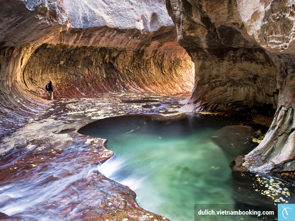 Các loại đá màu trắng, hồng và đỏ của Zion Canyon là điểm nhấn của chuyến thăm Công viên quốc gia Zion, trải dài 15 dặm (24 km) và được chạm khắc theo thời gian bằng sông Virgin.