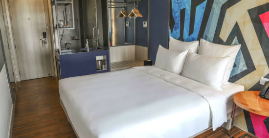 Màu sắc bên trong phòng khách sạn Pulse hết sức ấn tượng. (Nguồn: Internet)