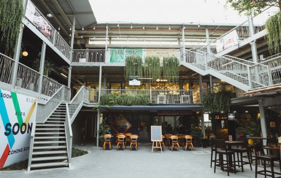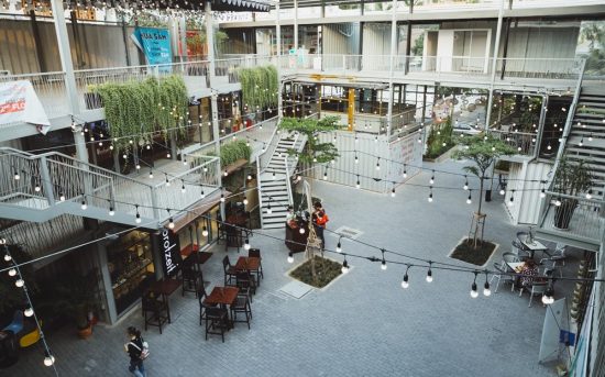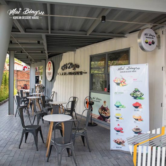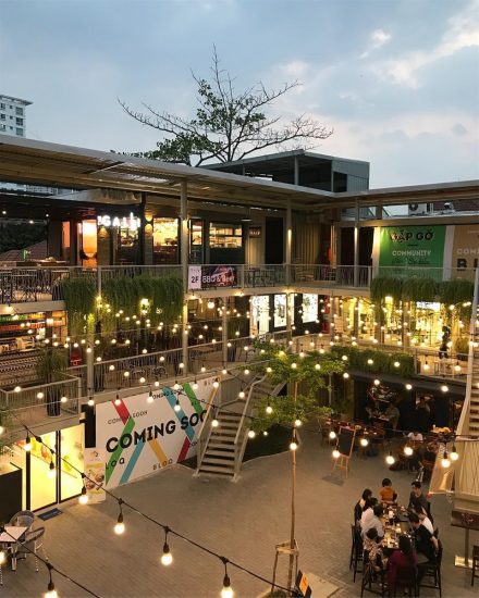 Khu tổ hợp này có tận 3 tầng lầu với thiết kế mở bao quanh một khoảng sân rộng. Cả khu nhà gồm các gian hàng container cùng quây vào một khoảng sân rất thoáng, nên cảm thấy khi đi dạo trong này là thư thái vô cùng.