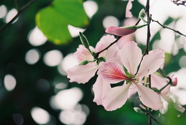 Lá ban mọc thưa, có hình móng bò, nhìn giống như hai trái tim ghép vào nhau, gợi đến tình yêu thời thanh xuân nồng nhiệt. Ảnh: ST