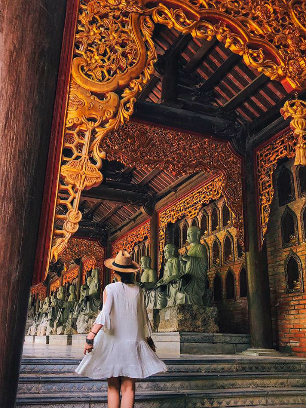 Không chỉ có phong cảnh hữu tình, uy nghiêm của một ngôi chùa nằm giữa chốn núi non Ninh Bình, chùa Bái Đính còn là ngôi chùa đẹp và có nhiều kỉ lục nhất ở Việt Nam. Đây là ngôi chùa lớn nhất Việt Nam và để tham quan hết, bạn có thể sẽ mất từ 3 – 4 tiếng. Chùa có khu chính điện rộng lớn, ngọn tháp cao và vô số tượng La Hán, kiến trúc chùa vô cùng tinh tế, để lại nhiều ấn tượng trong lòng du khách.