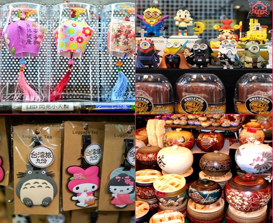 Đài Loan luôn ngập những thứ độc đáo, từ máy bay Hello Kitty đến nhà hàng bồn cầu, vậy nên việc tìm một cái USB Spider man hay miếng lót chuột Doremon rất đơn giản. Ngoài ra, khi đến Đạm Thủy, Thập Phần Cửu Phần các cô nàng sẽ chết mê chết mệt với những cái đèn lồng màu sắc, cái móc khóa bé xinh hay quạt giấy, đồ gỗ chạm khắc tinh xảo.