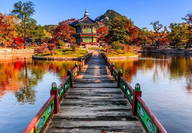 Cung điện Gyeongbokgung – Điểm đến quen thuộc khi đến thủ đô Seoul. Khi thăm cung Cảnh Phúc, bạn sẽ choáng ngợp với cây cổ thụ vàng rực hay cây phong lá đỏ khi vào thu. Nguồn ảnh: Internet