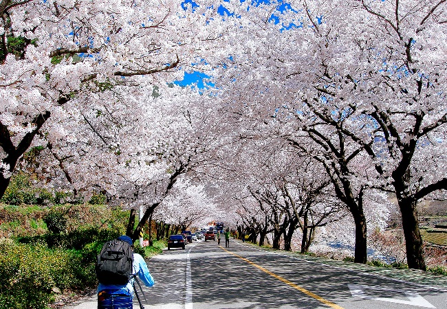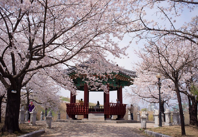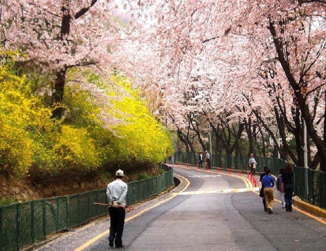 “Mùa xuân sang có hoa anh đào”, Hàn Quốc nổi tiếng với hoa anh đào khi xuân đến. Từ đường phố đến công viên, từ miền quê và nhất là những sườn núi đều một màu hồng phấn. Những cánh anh đào khẽ rụng khi gió thổi qua làm cảnh tượng thêm phần thi vị. Đây cũng là thời điểm người dân Hàn Quốc thường tổ chức đi dã ngoại cùng người thân ở công viên hay leo núi ngắm cảnh.