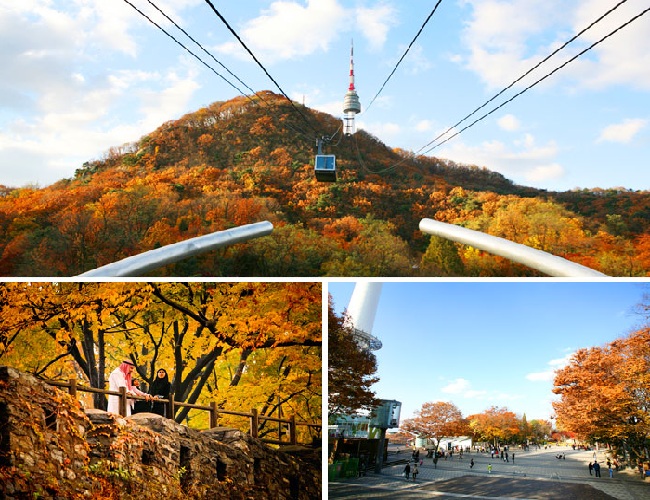 Công viên và tháp Namsan – biểu tượng của thủ đô Seoul. Bạn có thể bắt gặp lá đỏ - vàng ở khắp mọi nơi. Nguồn ảnh: Internet