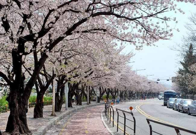 Hay chỉ cần đi trên đường phố Seoul cũng đủ để bắt gặp hoa anh đào. Nguồn ảnh: Internet