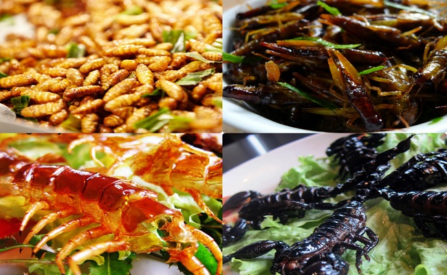 Nhện, dế, nhộng, bọ cánh cứng và cả bọ cạp, rắn…tất cả món ăn “kì dị” ấy là đặc sản của Campuchia. Việc ăn sâu bọ không quá lạ lẫm ở các nước châu Á, nhưng với Campuchia vẫn có đặc trưng riêng. Bạn có thể tìm thấy món ăn này ở khắp nơi nhưng nhiều nhất là ở Phnom Penh và Siem Reap. Nguồn ảnh: Internet
