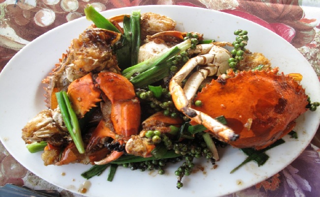 Cua biển là đặc sản của thành phố biển Kép, Campuchia. Chợ cua nổi tiếng nơi đây được biết đến với món cua ran tiêu xanh Kampot Kdam chaa trứ danh. Nguồn ảnh: Internet