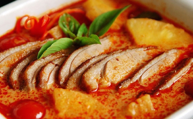 Không giống cà ri của Ấn Độ hay nước láng giếng Thái Lan, cà ri đỏ Khmer lấy vị ngọt của cốt dừa làm chủ đạo, không quá cay nồng. Thịt được sử dụng nấu với cà ri có thể là bò, cá, gà cùng cà tím, đậu đũa, khoai tây, nước dừa tươi, cỏ chanh và kroeung. Cà ri đỏ Khmer ăn kèm với bánh mỳ. Nguồn ảnh: Internet