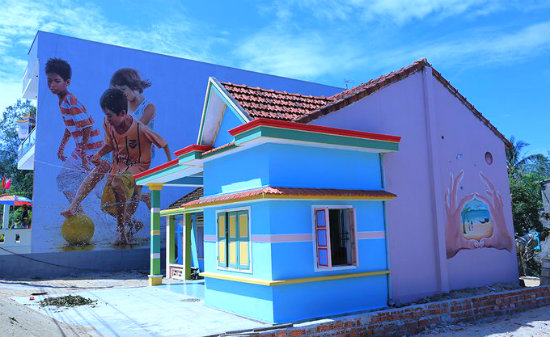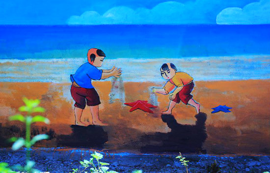 Để tiếp tục làm mới và tạo sức hấp dẫn cho làng bích họa Tam Thanh, các họa sĩ Hàn Quốc một lần nữa lại mặc những chiếc "áo mới" cho ngôi làng ven biển bình yên, xinh đẹp này.