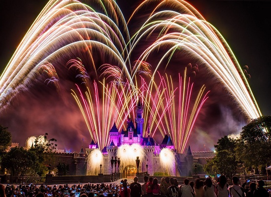 Disneyland Hồng Kông với màn trình diễn pháo hoa vào cuối ngày. Nguồn ảnh: Internet