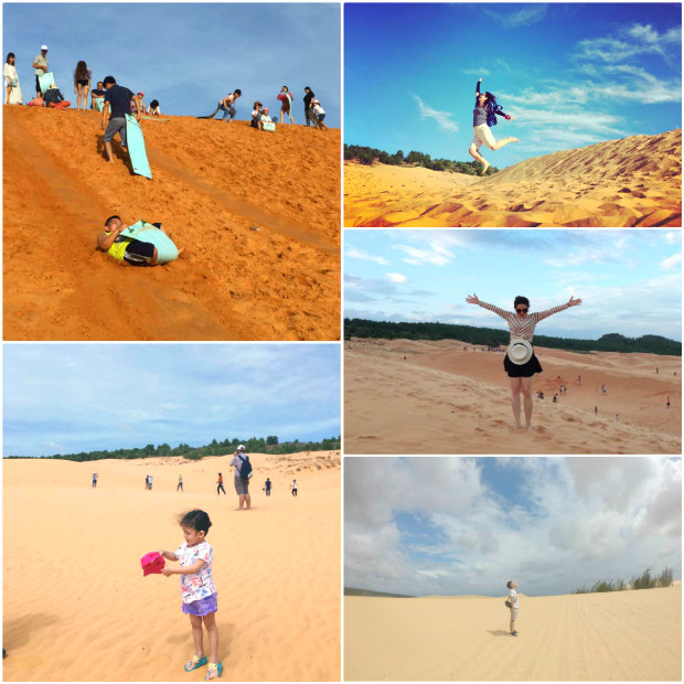 Tham quan đồi cát, bạn không chỉ được chụp ảnh, chiêm ngưỡng cảnh đẹp đồi cát bao la mà còn được trải nghiệm cảm giác trượt cát rất hấp dẫn. Bạn có thể trượt ván từ trên đỉnh cao nhất của đồi cát xuống dưới và sẵn sàng hò hét, thư giãn với những giây phút vui chơi thật thú vị.