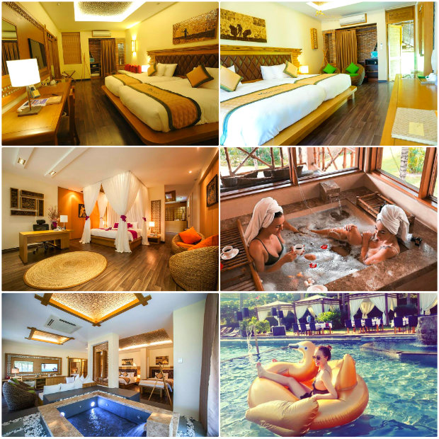 Khuôn viên của khu nghỉ dưỡng được bao phủ bởi những vườn cây xanh mát, mang đến cảm giác thoải mái nhất cho du khách. Các phòng nghỉ của khu nghỉ dưỡng có “view” đẹp, mỗi phòng được trang bị và thiết kế khá tiện nghi. Bên cạnh đó, hồ bơi, spa, phòng tập thể dục cũng là nơi lí tưởng để bạn thư giãn, nghỉ ngơi.