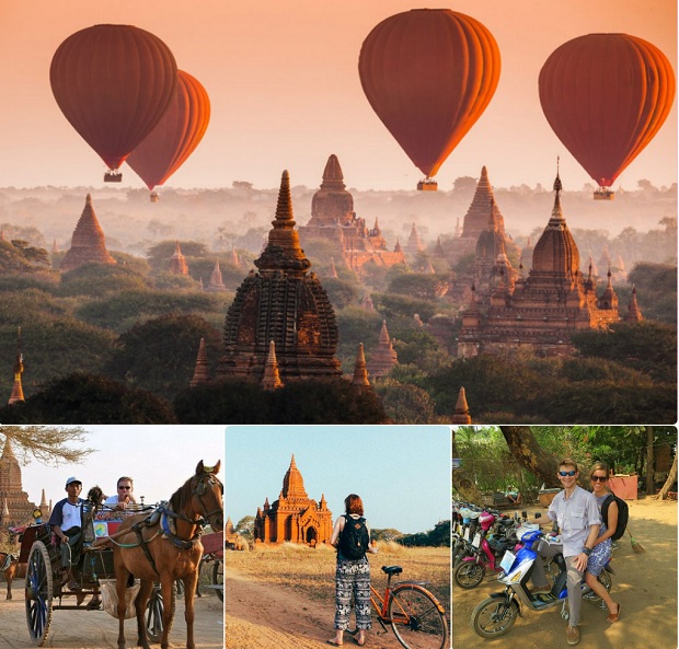 Lưu ý: Ở Bagan, bạn có nhiều lựa chọn phương tiện di chuyển để thăm thú khám phá nơi đây. Cụ thể: taxi thuê riêng (~600.000đ/ngày, phù hợp nếu đi cùng nhóm), xe ngựa riêng (~300.000đ/ngày, nếu bạn muốn đi chậm để ngắm cảnh), thuê xe đạp (~50.000đ/ ngày), xe điện (~150.000đ/ ngày) – lưu ý nếu tự đi bạn cần phải mua bản đồ Bagan ngay từ đầu. Nếu dư dả hơn, hãy thử trải nghiệm di chuyển bằng khinh khí cầu nhé.