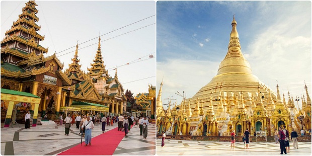 Chùa Shwedagon: Xếp hạng nhất về quy mô hoành tráng và không khí linh thiêng ở Myanmar. Chùa Vàng Shwedagon có một vị trí quan trọng trong tâm thức người dân đất Phật này. Ngôi chùa hàng nghìn năm tuổi ở Yangon này đươc dát 90 tấn vàng ròng và được đính hàng vạn viên kim cương, hồng ngọc trên đỉnh tạo nên một kiệt tác kiến trúc nổi bật.