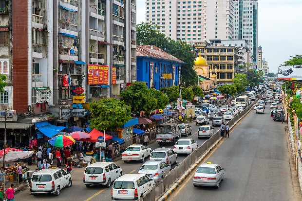 Đường phố trung tâm thành phố Yangon. Nguồn ảnh: Internet