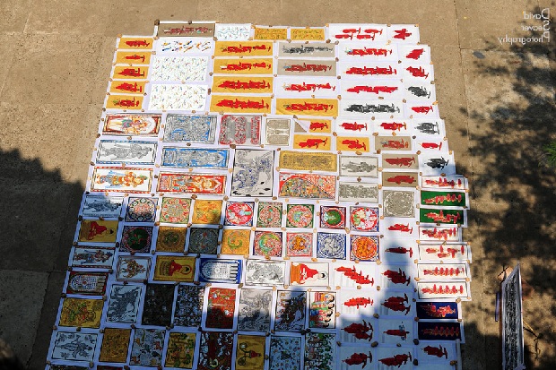 Tranh: Được bán nhiều nhất ở Bagan, tranh cát hay tranh lụa, tranh thêu ở đây thường có giá từ 80-500.000đ/ bức tùy vào kích thước và độ kỳ công của tranh. Nguồn ảnh: Internet