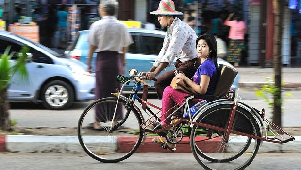 Xe xích lô (Cycle rickshaw): Một phương tiện thô sơ khác được chạy trong nội thành ở Myanmar, đi xích lô dạo ngắm phố phường, xem đời sống thường nhật của người dân Burma cũng rất thú vị đấy ạ.