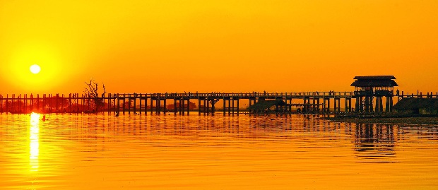 Cây cầu gỗ dài nhất thế giới - U Bein: Dài 1,2 km và được làm 100% bằng gỗ tếch. Trải qua hơn 2 thế kỷ, cây cầu vẫn vững chãi bắt qua con sông Taungthaman huyền thoại. Theo CNN, đây cũng là một trong những địa điểm đón hoàng hôn đẹp nhất thế giới.