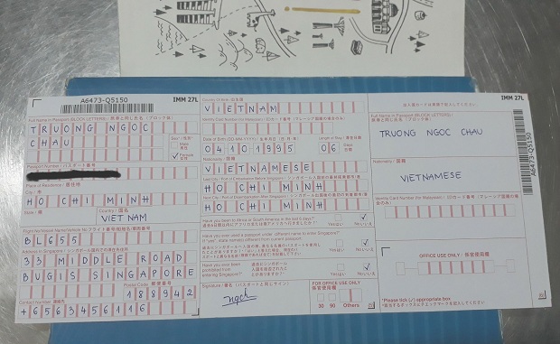 Tờ khai nhập cảnh Singapore. Nguồn ảnh: Internet