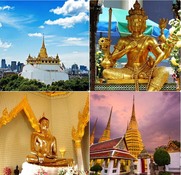 Những ngôi chùa tuyệt đẹp: Kiến trúc chùa chiền của Thái Lan khá độc đáo và đẹp mắt, ở Thủ đô Bangkok bạn hoàn toàn có thể trải nghiệm điều đó với Hoàng Cung (bên trong quần thể này có chùa Phật Ngọc nổi tiếng) chùa Bình Minh Wat Arun bên dòng sông mẹ Chao Praya, chùa Wat Pho bình yên, chùa Phật Vàng, chùa Núi Vàng và Tượng phật bốn mặt linh thiêng.