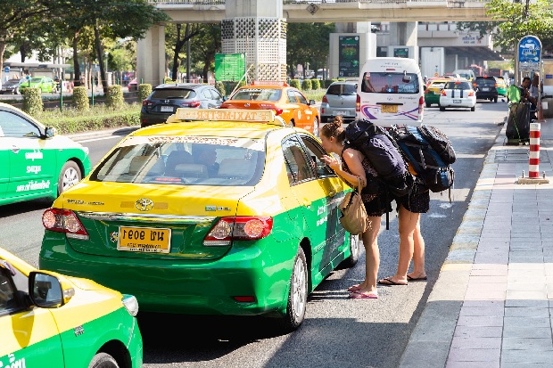 Trên đường phố Thái Lan bạn dễ dàng nhận ra những chiếc taxi với màu sắc vô cùng bắt mắt như hồng, vàng, xanh…Đây cũng là phương tiện sử dụng khá tiện lợi, bạn chỉ cần vẫy tay bắt xe ven đường. Lưu ý hãy thỏa thuận giá hoặc yêu cầu bật công tắc trước khi lên xe, nếu tài xế không đồng ý, bạn có thể đóng cửa và bắt xe khác. Đặc biệt, khi lên xe taxi nhớ dặn tài xế không đi đường cao tốc “No highway” vì nếu không dặn dò trước, tiền xe của bạn sẽ bị đội lên 50 baht/ lần đi cao tốc đấy.
