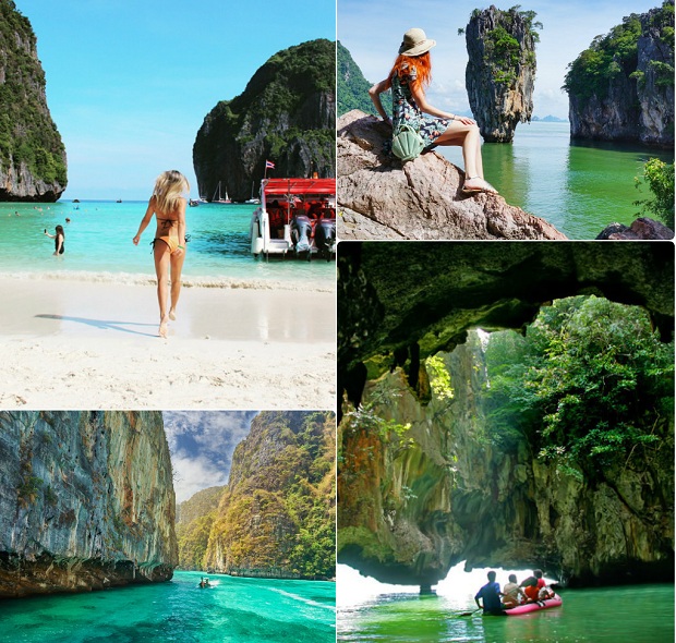 Koh Phi Phi – đảo James Bond – Vịnh Phang Nga: là những cái tên quen thuộc khi nhắc tới Phuket. Dưới thời tiết ấm áp nắng vàng của phương Nam, bạn có thể thả hồn theo vẻ đẹp của biển xanh ngọc, của núi đá vôi đầy hình thù độc đáo, rừng trong hang động hay chèo thuyền kayak, lặn ngắm san hồ đều rất tuyệt.